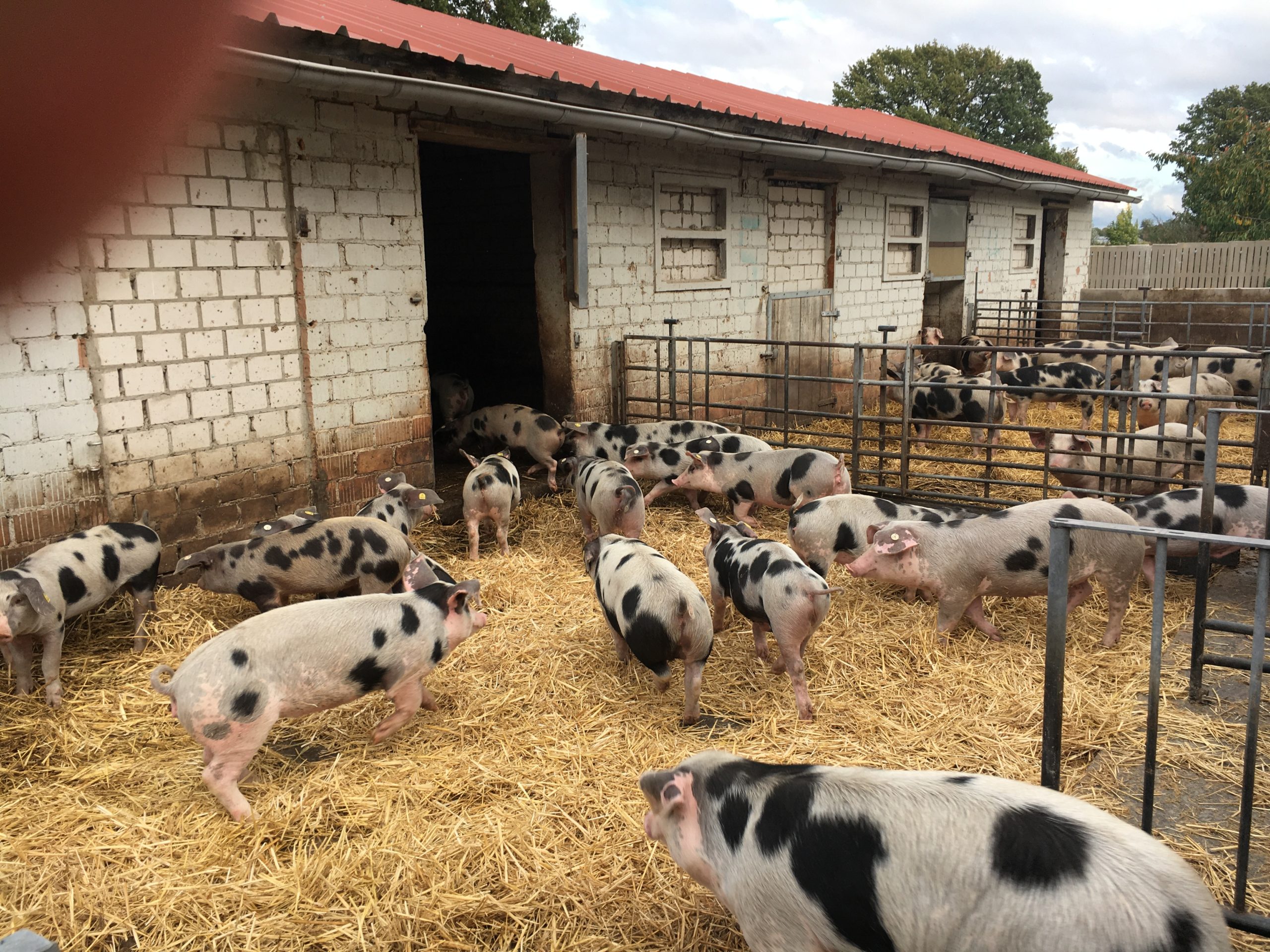 Die Schweine leben in Strohhaltung und haben viel Auslauf. Die Hühner nennen eine Streuobstwiese und eine mobile Hühnerfarm ihr Eigen. Am besten selbst anschauen und überzeugen lassen!