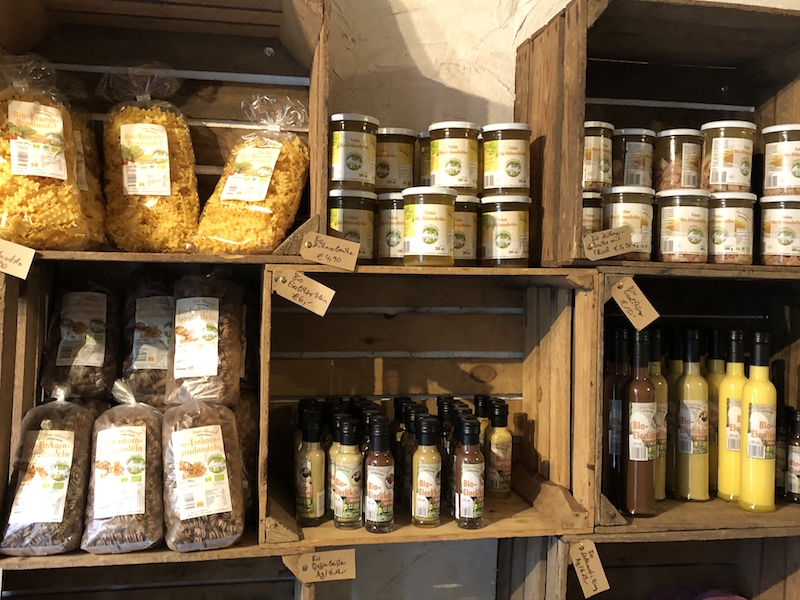Wurst und Fleisch vom Bunten Bentheimer, Hähnchen, Eier und Suppenhühner von den "Les Bleues", Eierlikör in den Sorten Pur, Vanille, Schoko und Kaffee sowie Bio-Eiernudeln in den Sorten Hartweizen, Einkorn und Dinkel!