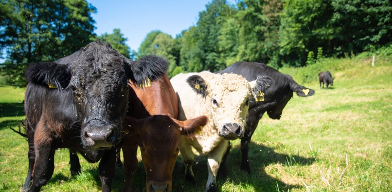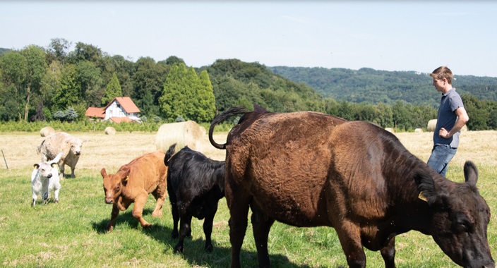 Unsere Tiere wachsen in "familiärer" Mutterkuhhaltung auf, ab April auf der Weide und ab November im Strohstall. Während der Weidesaison fressen die Tiere fast ausschließlich den Aufwuchs unserer Weiden sowie zuweilen Brötchen oder "Zuckerrüben-Schnitzel" zum Anlocken. Im Winter wird das Weidegras durch Grassilage ersetzt, welche von hofnahen landwirtschaftlichen Betrieben zugekauft wird. Die Haltung im Strohstall stellt eine arbeitsintensive Haltungsform dar, die dem Tierwohl sehr zu Gute kommt. Bei dem Transport zum ebenfalls familiär geführten kleinen Schlachthof achten wir sehr auf einen stressfreien Umgang, sodass ein gesundes, ausgeglichenes und ruhiges Rind beim Schlachthof ankommt.