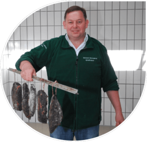 Für uns ist eine artgerechte Tierhaltung, die Tiere zu respektieren und sie in Würde zu schlachten, wichtig. Für unsere Familie ist die ökologische Lebensweise eine Grundvoraussetzung. Nach diesen Leitsätzen arbeiten und handeln wir auch in unserem Betrieb. Das Fundament unserer Metzgerei ist: die eigene Schlachtung im Haus und die eigenen Kreationen aus Bio Naturgewürzen. Unser Motto ,,einfach gesund essen” bedeutet für uns: