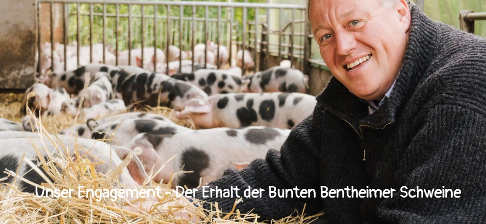 Der Biohof Rülfing unterstützt durch sein Konzept die Arten- und Pflanzenvielfalt des Münsterlands. Die Haltung und Vermarktung Bunter Bentheimer Schweine trägt dazu bei, diese alte Rasse zu erhalten.