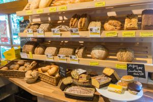 und überregionalem Obst und Gemüse, Brot, Kuchen sowie Spezialitäten aus