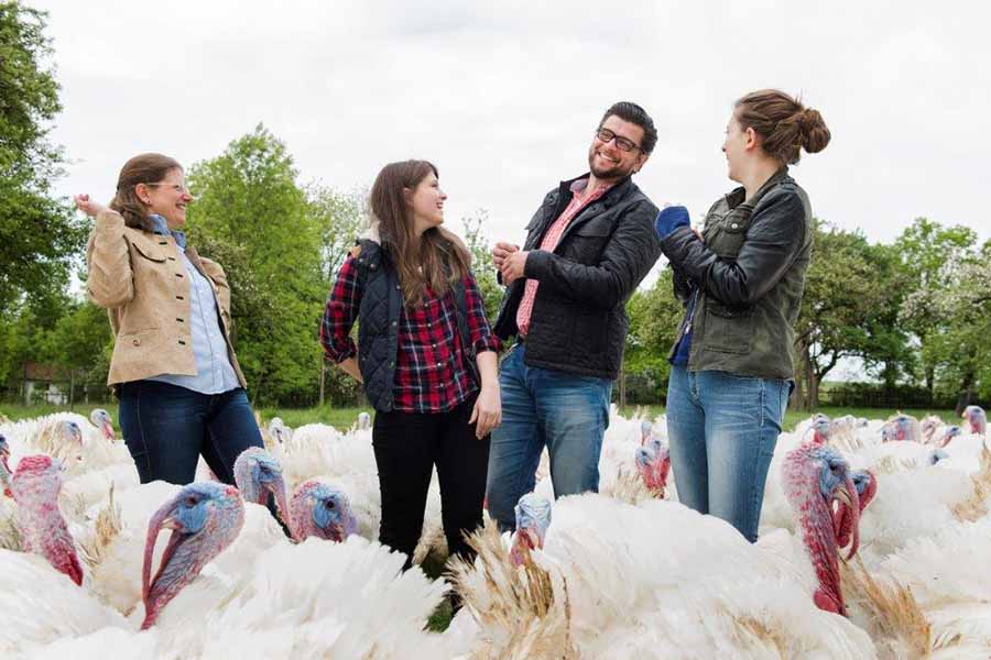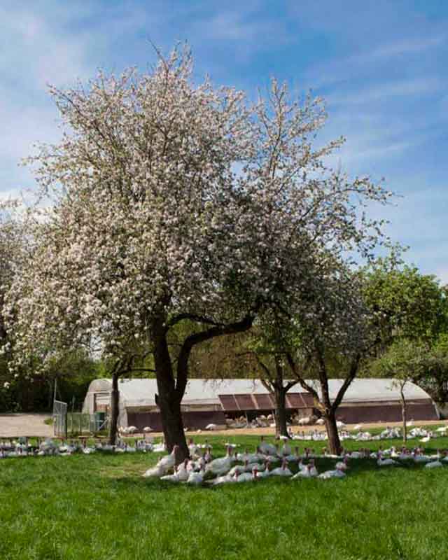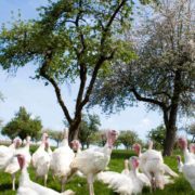 Auf Streuobstwiesen und in Folienhäusern, mit der Möglichkeit zum Weidegang, werden Puten und Landgockel in unterschiedlichsten Altersgruppen gehalten. Von Beginn an setzen Caroline von Wistinghausen-Noz und Landwirt Maik Noz alles daran, die Tiere auch selbst aufzuziehen.