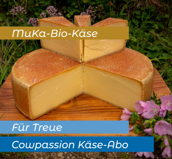 Mit der Mutter-Kalb-Haltung (MuKa) ermöglichen wir den Kühen ihre Kälber selber liebevoll aufzuziehen. Hilf mit und bestelle jetzt Käse aus MuKa-Haltung! Dazu ermöglichen wir bei bei Cowpassion Sammelbestellungen. Du findest bei uns als erste Milchprodukte aus muttergebundener Kälberaufzucht einen jüngeren und einen älteren Käse aus dem Trub im Emmental.