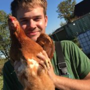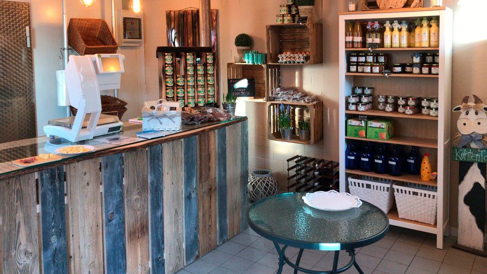 Engagierter junger Landwirt, der einen Hof komplett auf tiergerechte Landwirtschaft umgestellt hat und seine Gäste nun sowohl im Hofladen als auch im Hofcafé bewirtet.