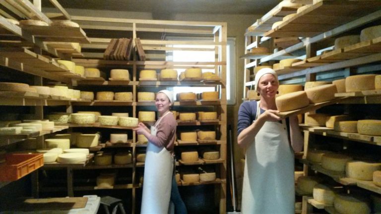 Wir verarbeiten die Demeter-Heumilch unserer Stolzen Kühe in einer eigenen kleinen Käserei und schlachten auch regelmäßig.