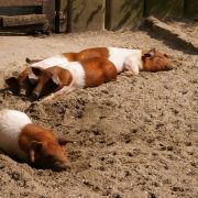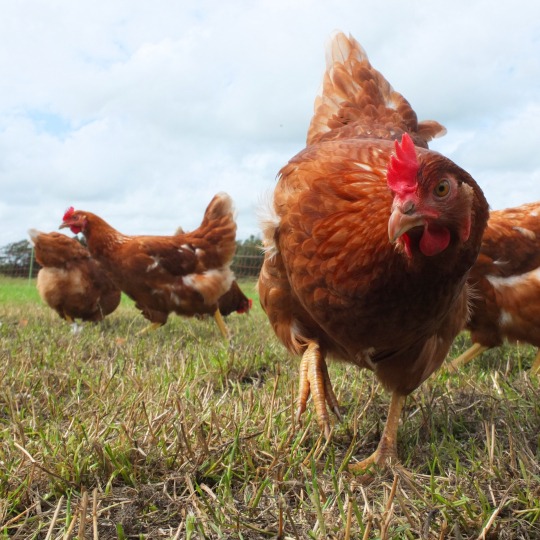 Die Hühner leben in einem modernen Mobilstall, sodass sie nach Herzenslust scharren und toben können. Eine offene Stallbauweise ermöglicht es den Schweinen sich an der frischen Luft im Schlamm zu suhlen oder im Stroh zu spielen. Die Angusrinder leben im Herdenverbund auf der Weide, wobei Kuh und Kalb einige Wochen gemeinsam verbringen dürfen.