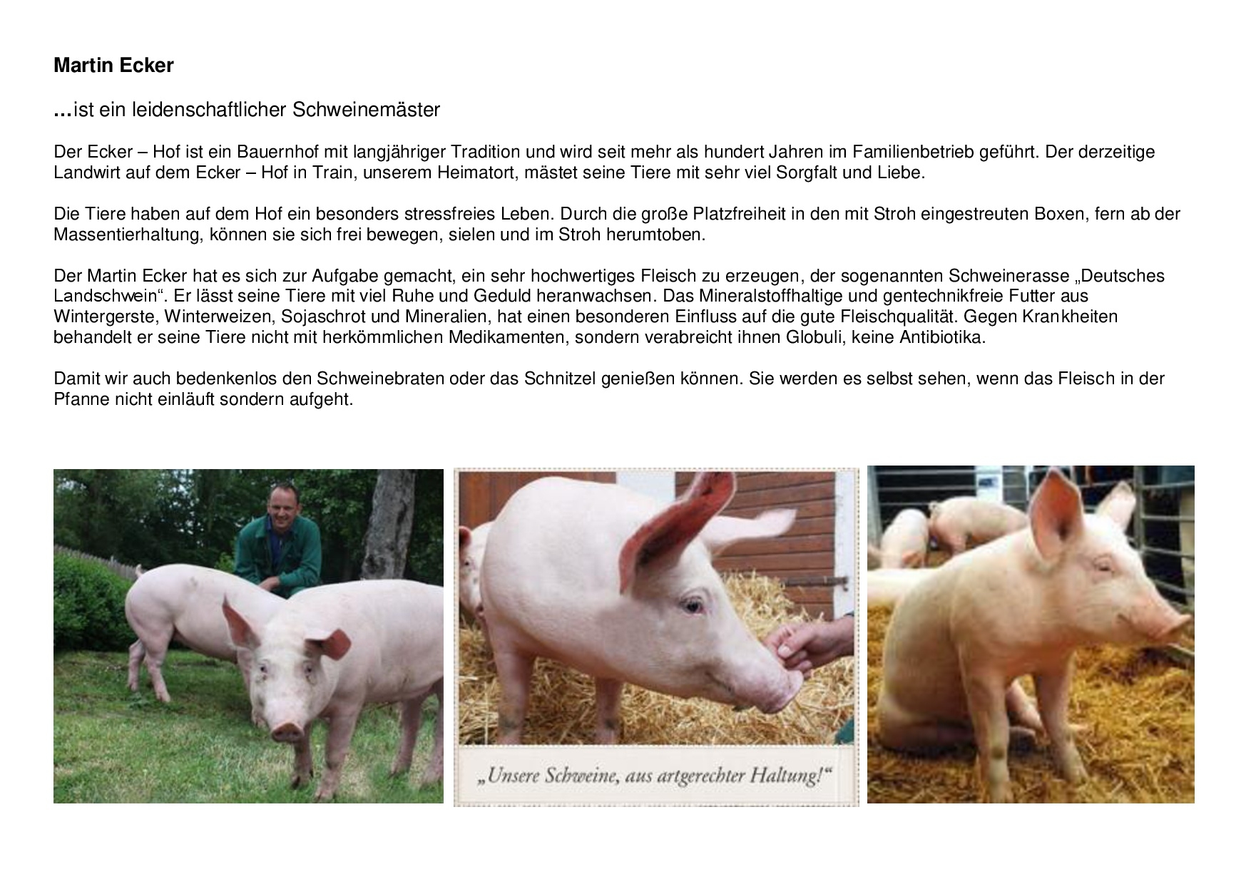 Original bayerische Metzgerei, die Produkte aus 100% tiergerechten Quellen anbietet und dabei einen besonderen Schwerpunkt auf die natürliche Verarbeitung aller Lebensmittel - besonders für Allergiker geeignet - achtet.