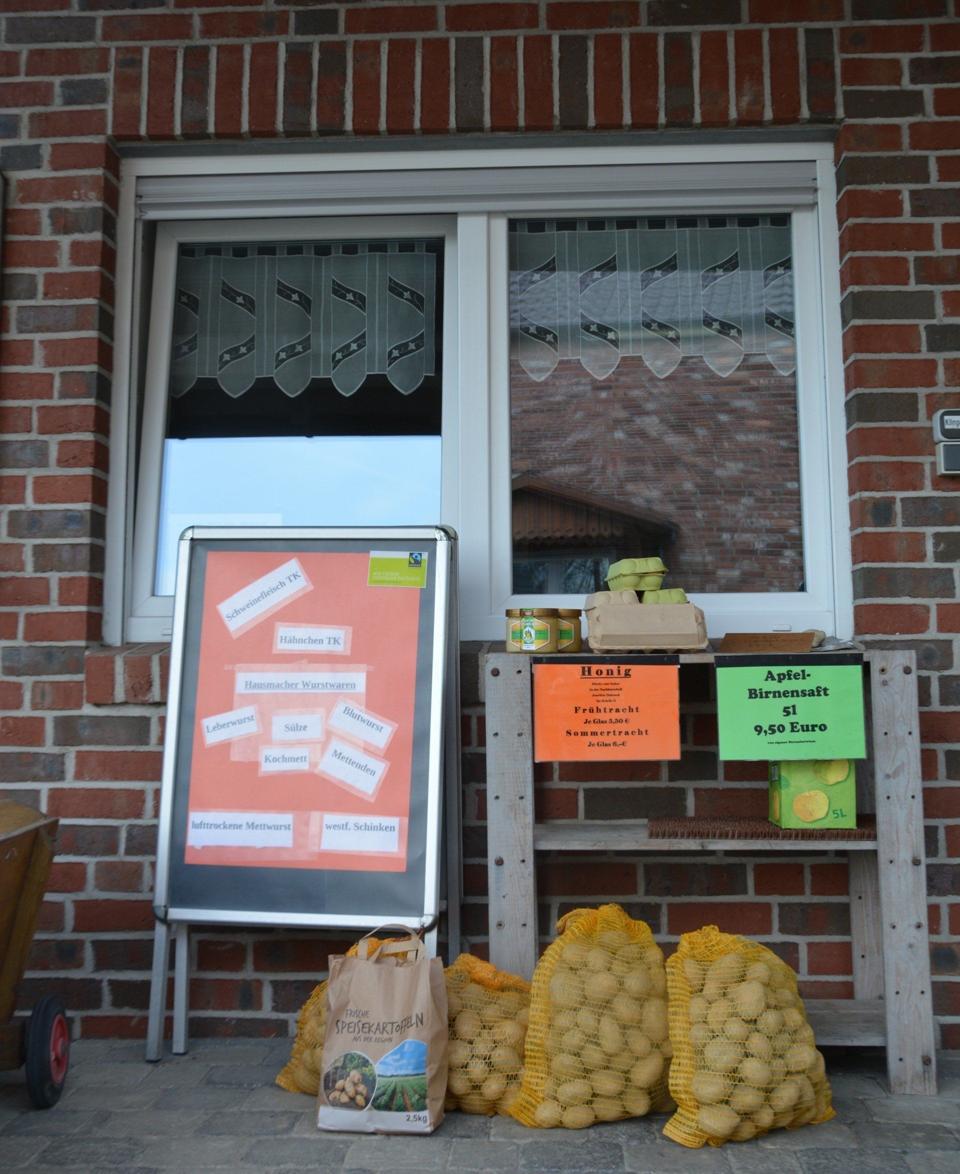 Am Selbstbedienungsfenster können täglich Kartoffeln, Eier und Honig erworben werden. Frisches Rindfleisch, Schweinefleisch, Hühner- oder Hähnchenfleisch ist auf Vorbestellung erhältlich.