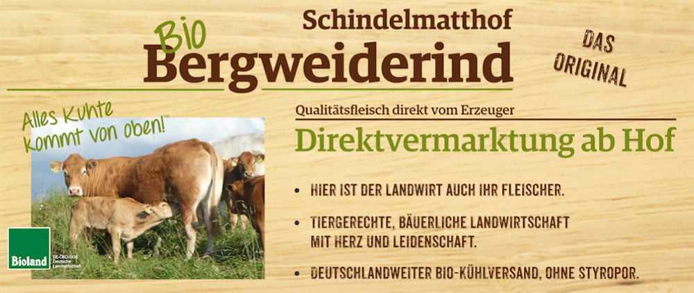 Wenn ihr euch für den Kauf unseres Schindelmatthof BioBergweiderindes entscheidet, betreibt ihr quasi Landschaftspflege mit Messer und Gabel bequem von zu Hause aus und unterstützt eine tiergerechte, bäuerliche Landwirtschaft mit Herz und Leidenschaft.