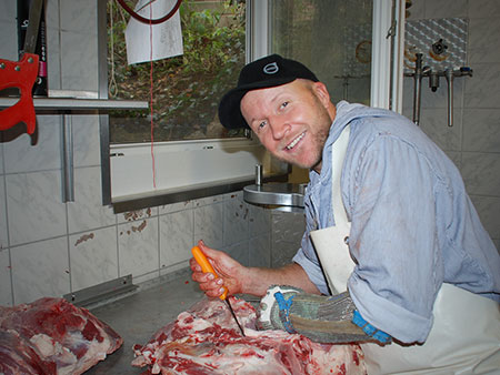 Die durch die Bewegung, Fütterung und das natürliche (langsame) Wachstum bedingte Muskelstruktur bewirkt, dass das Fleisch in der Pfanne seine Größe behält. Es schmeckt außerdem einerseits aromatischer, weil unsere Tiere doppelt so viel Zeit zum Wachsen benötigen, bis sie schlussendlich nur die Hälfte an Gewicht eines konventionell gemästeten Tieres erreicht haben; andererseits, weil die Futtergrundlage in unserer Höhenlage einen hohen Bergkräuter-Anteil beinhaltet.